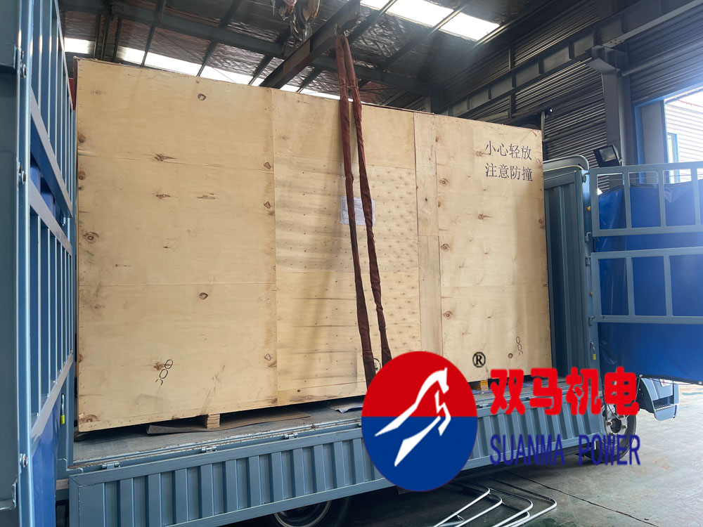 客户国外项目订购的800kva今日到工厂提货装车发运,800kva潍柴动力木箱包装后尺寸3850*1720*2320mm,整套机器5000KG.